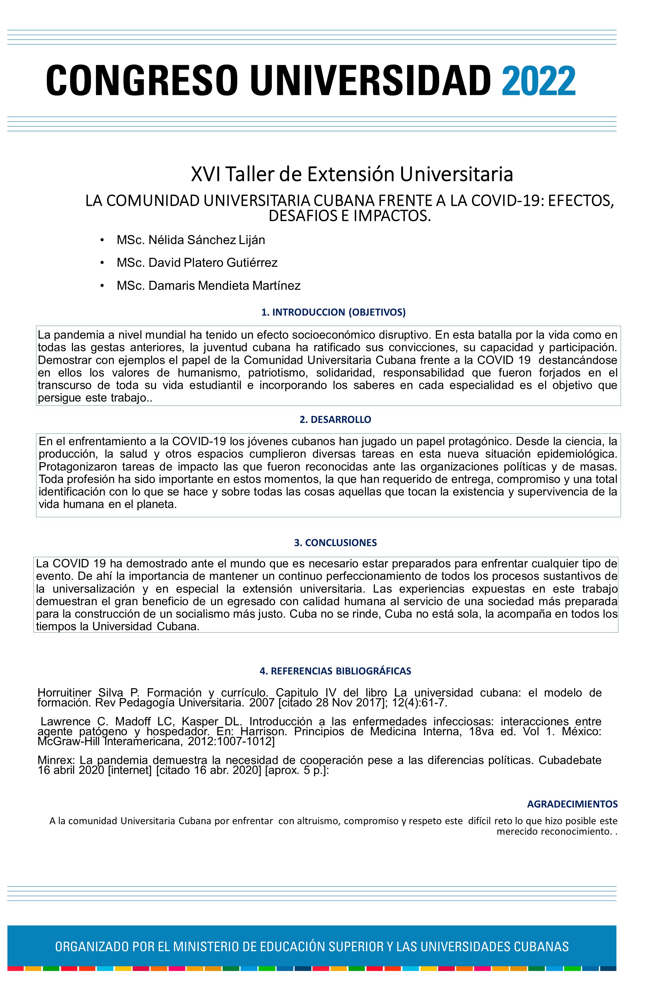 EXT-018. La comunidad universitaria cubana frente a la COVID-19: efectos, desafíos e impactos.